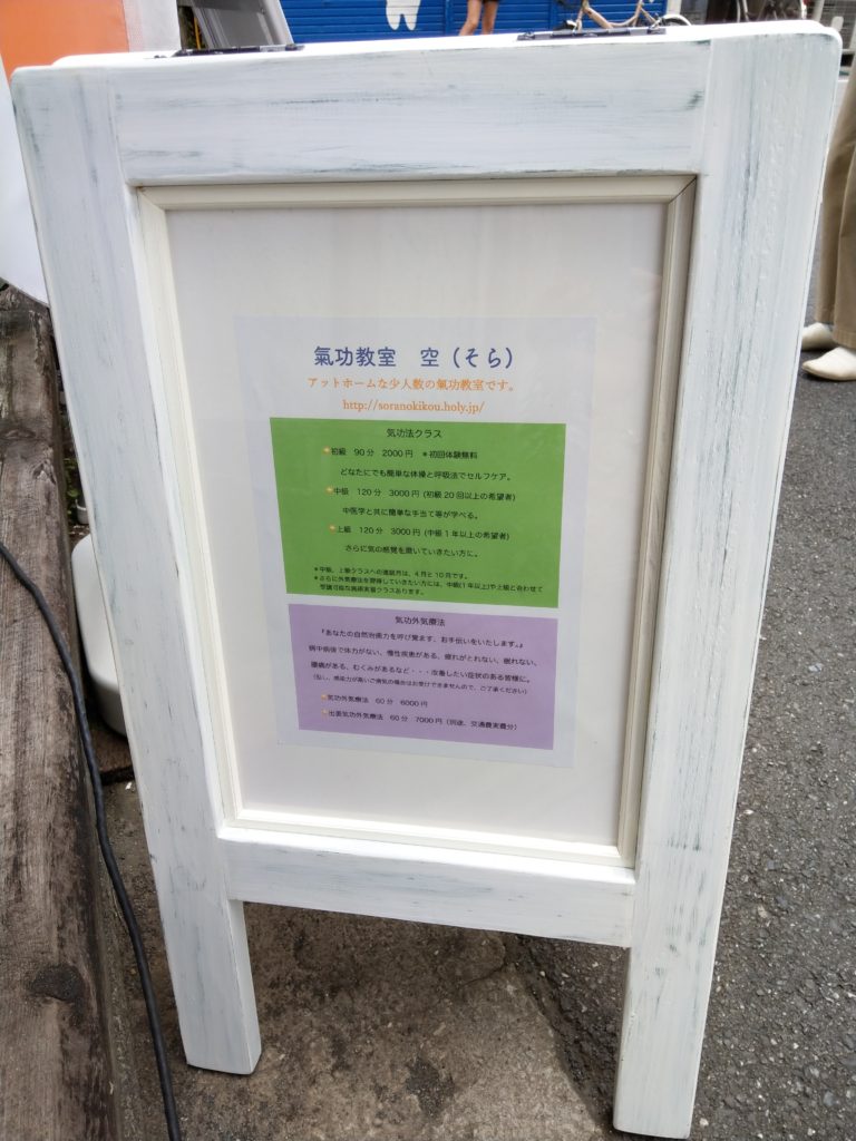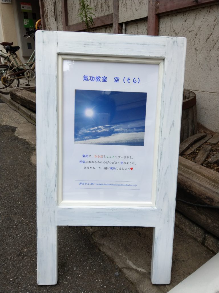 看板は月曜日に仕上がっていたのですが、晴天を待っていました。ドキドキしながら出していたら、13時からの上級クラスの皆さんがちょうど来てくれて、心強かったです。本当に教室に来てくださる皆様がいてくださっての、私と氣功教室 空 です。今までもずっと、これからもずっと・・・皆様 ありがとうございます。